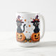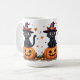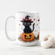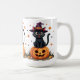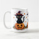 Aproveite suas bebidas de Halloween com estilo com esta caneca de design de gato preto e abóbora! Com um adorável gato preto usando um chapéu de bruxa empoleirado em uma abóbora esculpida, esta caneca adiciona um toque divertido e assustador ao seu café, chá ou chocolate quente. As cores vibrantes e o tema encantador de Halloween tornam-na um presente perfeito para amantes de gatos, entusiastas de Halloween ou qualquer pessoa que procure adicionar um toque festivo à sua coleção de louças. Se você está bebendo sua bebida favorita durante a temporada de Halloween ou dando de presente a um amigo, esta caneca é indispensável!