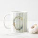 Caneca De Café C inicial dourado em tiras azuis e brancas