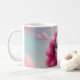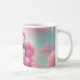 Uma pintura gerada pela IA de uma garota com cabelo cor-de-algodão doce rodeado por nuvens cor-de-rosa de algodão doce. Perfeito para um quarto de adolescente ou de menina adolescente.