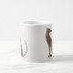 Inspirado pela estética moderna do meio século e pelas longas e magras linhas do cão Greyhound, este retrato geométrico de animais de estimação usa texturas pintadas por aquarela para amolecer o design e dar a esse amante de galgos em sua vida algo para sorrir pela manhã quando bebem dessa legal caneca de amor.