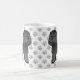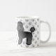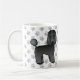 A ilustração original do desenho de Destei de um cão da raça Toy Poodle, casaco preto e bonito. O fundo tem um padrão de pegadas de cinza.