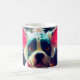 Esta caneca tem um cachorro bonito nela.