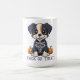 Esta é uma linda caneca de Halloween que apresenta um cachorro fofo na fantasia de Halloween. Você pode personalizar o texto padrão "TRICK OR TREAT".
