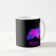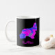 Silhueta de cachorro-do-panela-do-Cocker em um padrão de abstrato moderno rosa-quente e azul brilhante e quente em uma caneca preta. Personalize com o nome na frente.