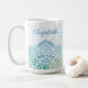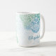 The Caelum Mandala 15 oz. Personalized Mug, in a palette of botanical greens and a touch of sky blue, brings an element of mindfulness to your morning routine, or any time you need that sustaining cup of coffee, tea, or hot chocolate. This extra-large size is especially cosy to wrap your hands around. Would also make a thoughtful gift for your favorite yoga teacher. Available in an 11 oz. version as well.