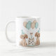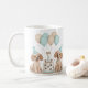 Uma bela ilustração cartoon dos cães de Poodle Standard vestindo um chapéu de aniversário em volta de um bolo de aniversário e balões. Perfeito para amantes de animais de estimação ou pais de cães.