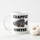 Café Crappie é um trocadilho engraçado para o pescador Crappie ávido numa caneca de café. Esta caneca de café faz um presente de excelente para o angloriano que ama o exterior e pesca por janto. O design nesta caneca de café apresenta um peixe-frade troféu. A piada pai final para a pessoa que ama uma xícara de joe pela manhã.