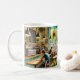 Presente perfeito para o amante de viagem e café. Uma pintura aquosa de uma cena diária num café confortável em Austin, Texas, com uma mistura de energia vibrante e encanto rústico. Dentro, os patrões sentam-se em mesas de madeira, alguns trabalhando em laptop, outros conversando sobre o café, com uma pessoa desenhando numa pequena mesa cercada por canetas coloridas. A decoração inclui paredes pastel de chalé e creme, plantas penduradas em porta-macramé, e um menu de chalkboard em tons laranja, amarelo e rosa brilhantes. A luz do sol flui através de grandes janelas de vidro, iluminando uma barista preparando o espresso e um cliente com um chapéu amplo. Fora das janelas, as bicicletas descansam contra uma parede coberta de mural com uma arte de rua vibrante e ousada. A cena inclui browns, verdes exuberantes e pop vívidas de cor, criando uma atmosfera viva mas relaxada. O estilo de aquarela usa pinceladas suaves e tons quentes com sotaques vibrantes, capturando a essência criativa e acolhedora de Austin.