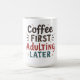 A tipografia minimalista com a citação engraçada "Café Primeiro, Adultando Depois". Perfeito para amantes de café