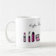 Design perfeito para a diva que ama seu café e seu batom. Itens de maquiagem bonitos em cor rosa. Batom, rímel e blush.
