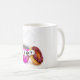 Um design bonito de um café quente e de uma rosquinha junto. O copo de café e a rosquinha têm os olhos e estão olhando fixamente em se. Estes olhares do café quente e de um design da rosquinha grandes nesta caneca