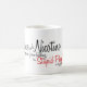 A caneca lê a "cafeína e a nicotina mantem-me de matar as pessoas estúpidas, assim que despeça de mim sobre ambos"