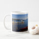 Um caiaque vermelho no lago George em NY com as montanhas de Adirondack na distância é um fundo maravilhoso para o texto. Personalize esta caneca com todo o nome para um grande presente!