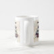 Uma caneca com uma fotografia com rochas sobre si. Cercado por rochas brancas soltas e pequenas flores brancas.