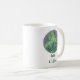 O texto facilmente personalizado figura nesta caneca de café que é embelezada em ambos os lados com um trabalho de arte circular pastel que representa três trevos folheados ou xamrochas em verde macio sobre fundo roxo mudo. O shamrock é um motivo perfeito para a Rua. Dia de Patrick.