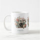 A mug with a vintage styled camera decorated with flowers. Pastel colors of pink, cream and green.