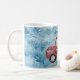 Caneca De Café caminhão de colheita vermelho sobre fundo azul com