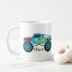 Aumente a diversão com este Monster Truck Mug apresentando um legal caminhão monstro ciano com um ícone de raio lateral, perfeito para rapazes que adoram carros de corrida e veículos grandes. Personalize-o acrescentando o nome do seu filho e até personalizando o número do caminhão de corrida para um verdadeiro presente de uma espécie. Ideal para aniversários, ocasiões especiais, ou cacau fazer de manhã extra excitante!