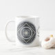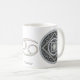 Este Cancer, chamado mandala, apresenta uma pedra lunar cercada pelo símbolo do cartaz, a constelação, e o símbolo alquímico da Água entre filigrana e tecelagem. Estão disponíveis outros tamanhos e estilos de caneca, incluindo canecas de viagem e canecas de cerveja.