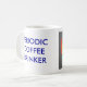 Gráfico da mesa periódica em um lado, a frase "BEBEDOR PERIÓDICO do CAFÉ" no outro.