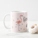 Médio do século inspirado no design com um retrorreflector com um flamingo cor-de-rosa e estrelas num fundo rosa pálido. Um design personalizável para você personalizar com seu próprio texto, imagens e ideias. Uma imagem de arte digital original criada por Jess Perry no QuirkyChic Retro.