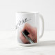 Celebre a arte da caligrafia com esta elegante caneca de café com uma mão, caneta e design. Perfeito para escritores, artistas ou qualquer pessoa que aprecie a beleza das anotações manuscritas.
