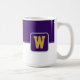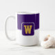 A caneca de café é mostrada aqui com um impressão de estilo de bloco de cores com uma letra de amostra, personalize e altere cores e letra ou comprar como está. Cores Roxo, Branco Personalize este item ou comprar como está.
