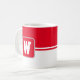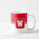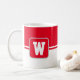 A caneca de café é mostrada aqui com um impressão de estilo de bloco de cores com uma letra de amostra, personalize e altere cores e letra ou comprar como está. Cor Vermelha, Branco Personalize este item ou comprar como está.