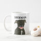 Eu estou apaixonado por esta ilustração bizarra e detalhada da aquarela de um pitbull negro ou um cão com equipe! Personalize essas canecas e tropeços com seu nome ou monograma e até mesmo, e mude a cor do manípulo para felicitar sua decoração! Compre o resto da minha coleção para os mais doces donos de casa, chás de panela, professores, sogra, marido, namorado, papais noeis secretos ou presentes difíceis de comprar! Para ver mais trabalho e aprender sobre esta artista, visite-a em: www.theprintsprincess.com e www.instagram.com/theprintsprincess