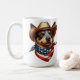 Caneca De Café Cão Vestindo chapéu e bandeira americana Bandana