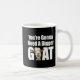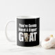 Engraçado "Você vai precisar de uma caneca maior de cabra" para manter seu café ou cacau quente aquecido. Esta xícara tem texto branco e fundo preto com uma cabra sorridente. Claro que agradeço a alguém com senso de humor.