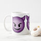 Enfrente que parece similar a um diabo. Tem uma cara de sorriso devista com as sobrancelhas internas do revestimento. Igualmente sabido como o diabo feliz Emoji, o diabo roxo Emoji, o diabo Emoji e os chifres Emoji do diabo.