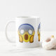 Uma cara gritando com as duas mãos que guardaram a maxila e os mordentes, em uma casa Sozinha-stylepose. Talvez viu um fantasma. Igualmente sabido como Emoji em casa sozinho, o gritar Emoji e o gritar enfrentam Emoji.