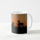Um pequeno rebanho de ovelhas de guerra se instala para a noite. Suas silhuetas se posicionam contra o pôr do sol por trás delas. Computação de Kathie Miller.