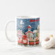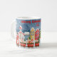 Cartoon de Natal, cidade de inverno Coffee Mug. Comboio de desenho animado de Natal que viaja através de uma cidade festiva durante o inverno.