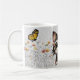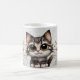 Caneca De Café Cartoon Adorável Tabby Cat, flores e borboletas