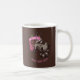 Uma caneca com um guaxinim ganancioso com uma barriga de cheio, reclinando-se contra os restos do bolo de chocolate que ela tem comido. Um presente temático de aniversário ou festa, algo para fãs de animais bregos mas bonitos, ou um especialista em panificação. Inspirado pela minha própria incapacidade de deixar o bolo sozinho, e também por um filme de comédia com um incidente de comer bolo de guaxinim. Altere o texto padrão para seu nome, mensagem ou legenda preferido; as alterações são refletidas em ambos os lados.