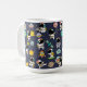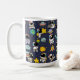 Um gráfico do astronauta clipart, Outer Space: astronauta segurando o balão como um planeta, um foguete, estrelas, ícone de OVNI, ícone de satélite espacial, planeta Saturno, nave espacial e outros. Num contexto transparente. Sobre fundo azul de Oxford (azul marinho).