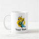 Mug personalizável com uma ilustração de uma belíssima abelha de super-herói com uma capa em ação, com modelo de texto personalizado para seu nome ou mensagem, ilustração por MaxiHarmony / Radka Kavalcova