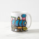 Uma ilustração de um comboio puxando carvão. Esta design parece realmente eficaz nesta Mug