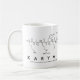 Karyme soletrava em aminoácidos como K A R Y M E (Lysine Alanine Arginine Tyrosine Methionine Glutamic Ácido) numa caneca para o cientista em si. Não consegues encontrar o que queres?