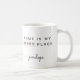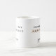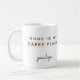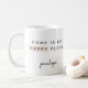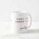 Uma caneca de tipografia branca e preta, "lar é meu lugar feliz", com nome personalizado e bonito elemento de pincel.