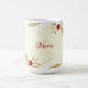 Caneca botânica de flores brancas e vermelhas escuras românticas com folhas douradas
