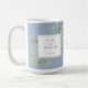 Caneca de casamento botânico em aguarela azul poeira e verdura. Desenhado por Thisisnotme©