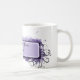 Personalize a elegante e moderna Coffee Abstrato Floral com os nomes pessoais da noiva e do noivo e a data específica da cerimônia de casamento. Crie um presente de casamento personalizado, presente de assistente de casamento ou chá único ou favor de casamento. Esta bonito xícara de café personalizada apresenta um design de vetor floral abstrato em tons roxos de lavanda cortesia de www.designious.com.
