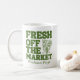 Celebre a noiva com nossa Caneca de Café Tema Verde "Fresca do Mercado"! Com um design divertido e uma cor fresca e moderna, esta caneca é perfeita para beber com estilo no chá de noiva ou dar de presente aos convidados como um mimo divertido. Um presente prático e fofo para qualquer um pronto para brindar ao amor - uma xícara de cada vez! Esta caneca de café faz parte de uma coleção de casamento com itens coordenados disponíveis.