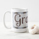 Esta caneca para avô apresenta um padrão castanho e branco de cacau com "Grampy" escrito em cacau e branco. Há uma caneca de "Grammy" correspondente no meu compro também.