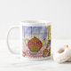Um gatinho fofo, um bule de chá e um prato quente de muffins decoram esta caneca de café. Dê esta caneca como presente para Dia de as mães, aniversário, etc... A design é de arte original.