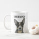 Eu estou apaixonado por esta ilustração de aquarela lindamente detalhada de um galinheiro azul ou cão-gato australiano! Personalize essas canecas e tropeços com seu nome ou monograma e até mesmo, e mude a cor do manípulo para felicitar sua decoração! Compre o resto da minha coleção para os mais doces donos de casa, chás de panela, professores, sogra, marido, namorado, papais noeis secretos ou presentes difíceis de comprar! Para ver mais trabalho e aprender sobre esta artista, visite-a em: www.theprintsprincess.com e www.instagram.com/theprintsprincess
