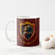 O escudo do Cavaleiro. Casaco de crachá de armas. Crachá de segurança. Ilustração desenhada à mão. Modelo antigo vintage personalizável Mugs & Cups para seu próprio texto e imagem. Perfeito para criar presentes de parabéns individuais / presentes para todos que amam a Idade Média / Idade Média / tópico vibrante. — Visite minha coleção "Medieval" para mais produtos com este design e outros designs únicos excelentes em posters, t-shirts, ornamentos, relógios de parede, adesivos, ímãs e muitos outros produtos populares.